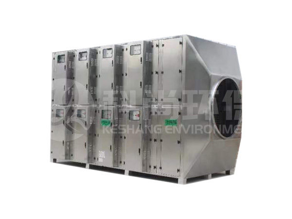 廢氣通過風機輸送至裝置內,在裝置產生的強氧化性物質(臭氧)和紫外線及催化劑作用下,被迅速裂解,氧化,降解成低分子化合物,水氧化碳